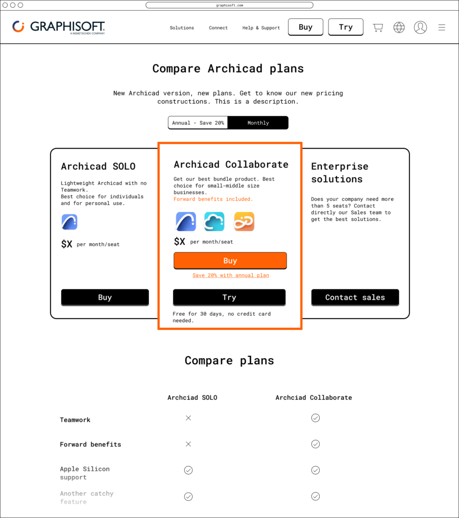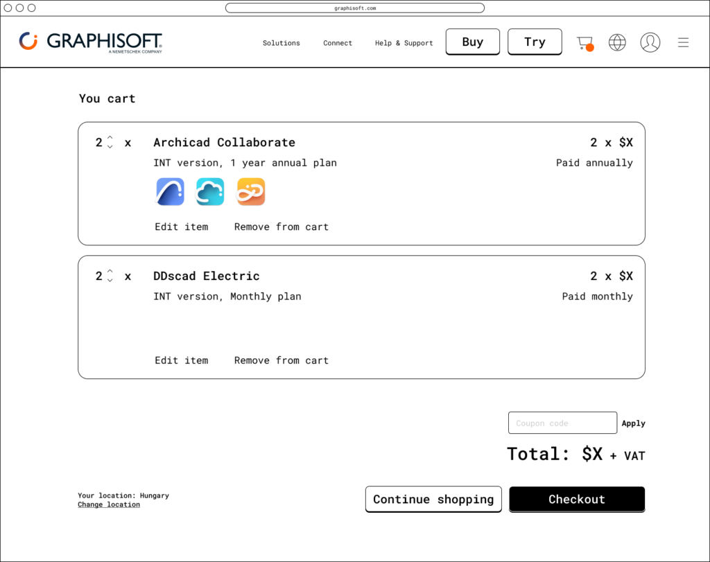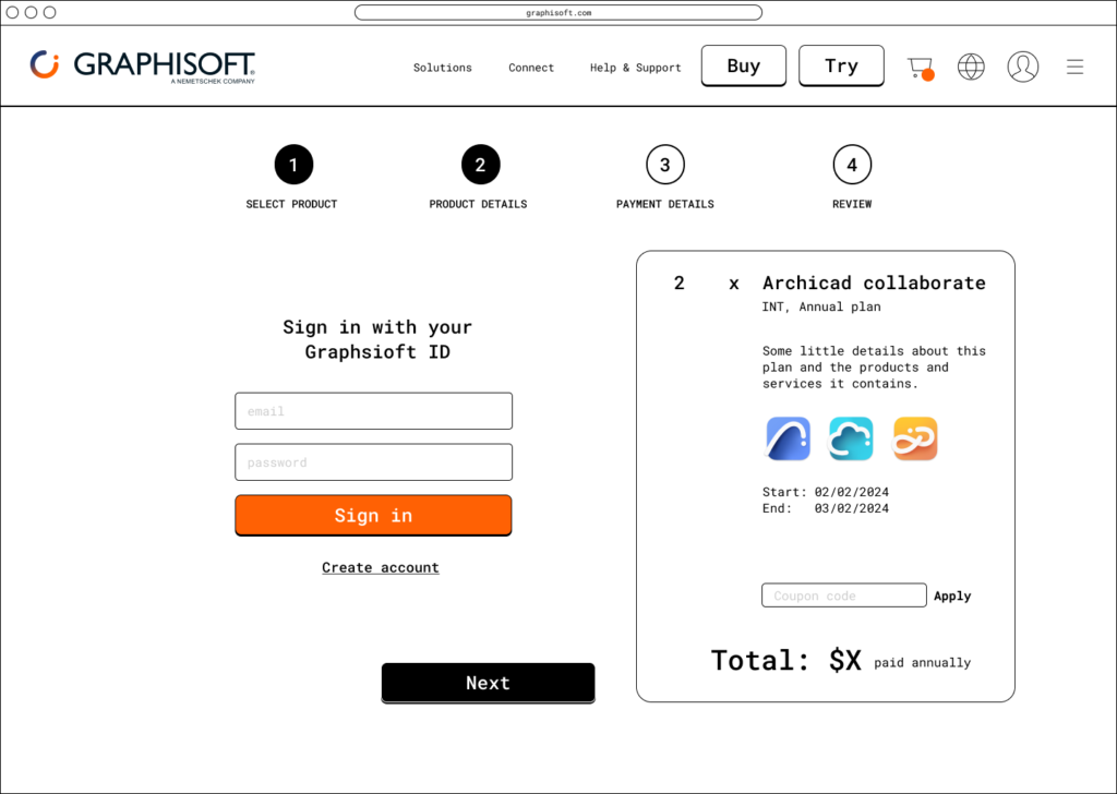 Graphisoft’s strategic pivot from perpetual licenses to a subscription model required a complete overhaul of its e-commerce platform. The existing system was ill-equipped to handle recurring revenue and subscription management, so the primary goal was to design a new webshop that would seamlessly facilitate this business transition and boost user adoption.