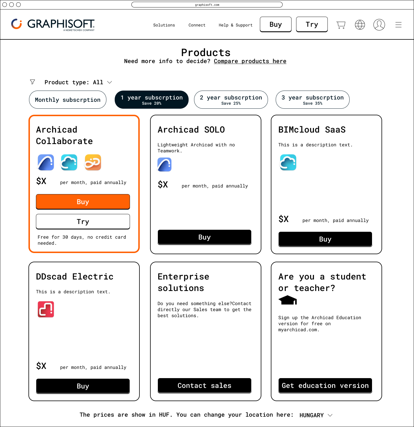 Graphisoft’s strategic pivot from perpetual licenses to a subscription model required a complete overhaul of its e-commerce platform. The existing system was ill-equipped to handle recurring revenue and subscription management, so the primary goal was to design a new webshop that would seamlessly facilitate this business transition and boost user adoption.